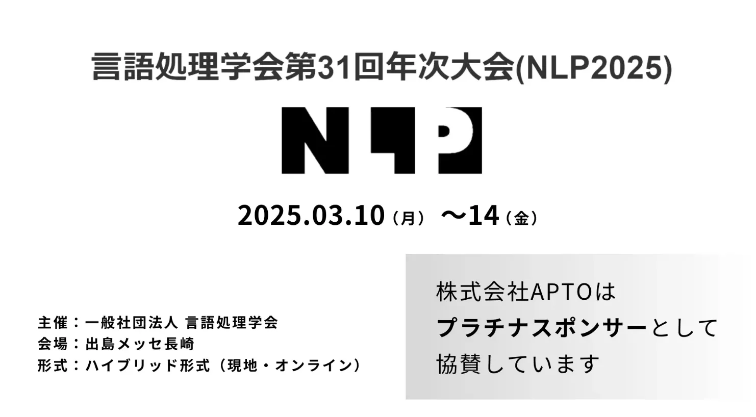 当社はプラチナスポンサーとして、言語処理学会第31回年次大会(NLP2025)に協賛しています。
